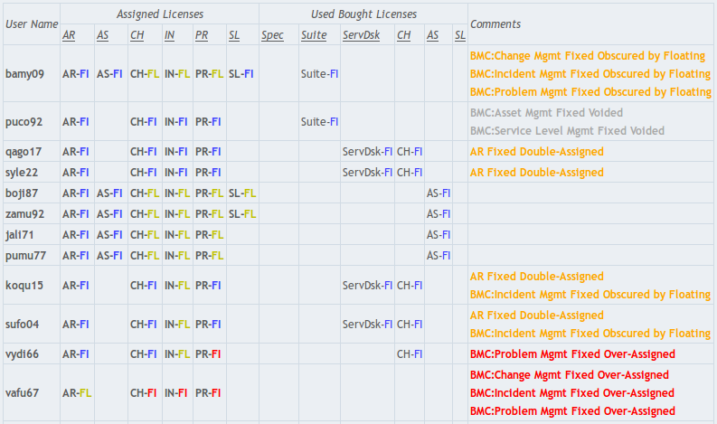 This part of the utility will point out license assignment inconsistencies between what you see and what BMC audits.